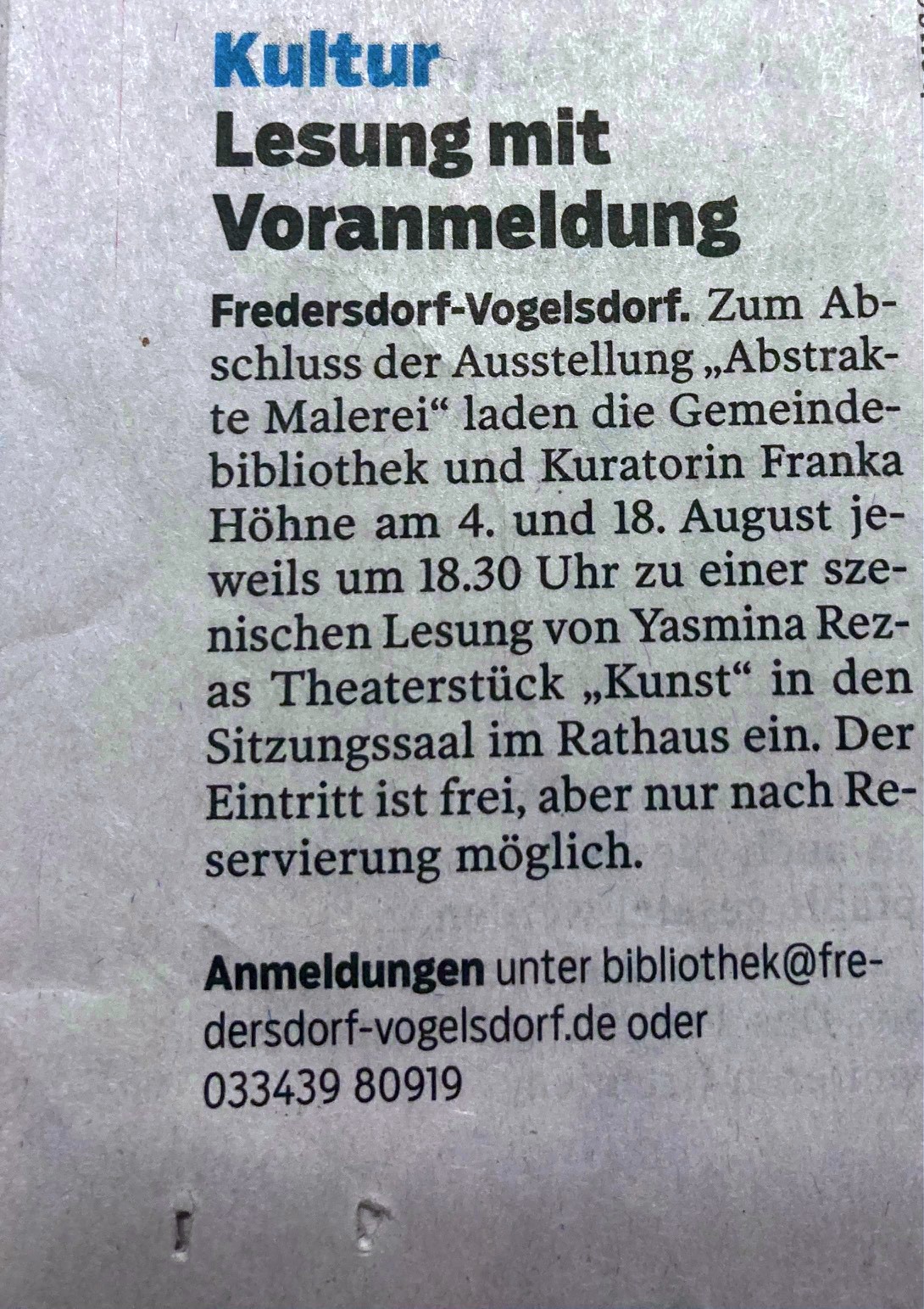 Ein paar Zeitungsartikel über die Veranstaltungen. Bitte anklicken für den vollständigen Artikel. Danke!